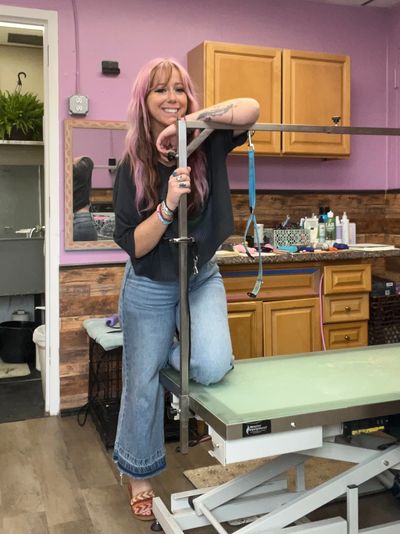 Megan, from Divine Dogs is our Head Groomer! Megan has over 14 years of grooming experience. She started out at PetSmart, and then opened her own business, Divine Dogs. She was looking for a new location, and we had the perfect space for her! Megan creates a positive and relaxing environment where dogs can get quality, professional grooming services, in an environment that works best for them! Megan does a great job at listening to the dog she's working on and is very in tune with them. Megan works on 1 dog at a time, so they get her full undivided attention from start to finish. She truly does put your dog's needs first. She will always have the dogs best interest in mind. If your pup is new to the grooming process, or is not a fan of it, Megan is wonderful at helping to desensitize them to the process and making the process a positive experience for them! When not in the salon, Megan loves spending time with her family and her two chihuhuas, Tiki and Hazel. Megan also loves spending time outdoors, crafting, and listening to live music! She can't wait to meet you and your pup!